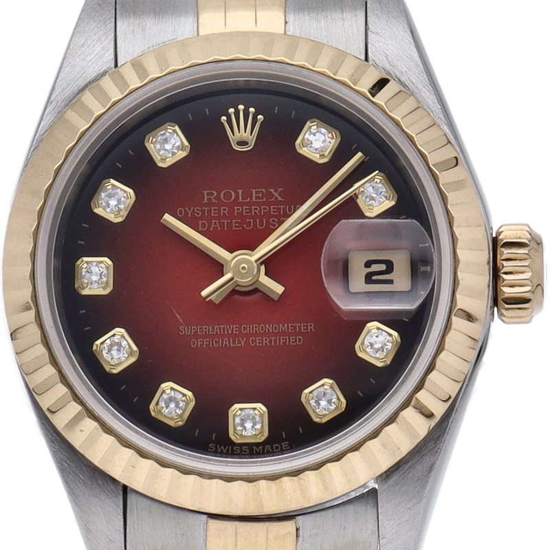 デイトジャスト レディース時計 10Pダイヤ レッドグラデーション