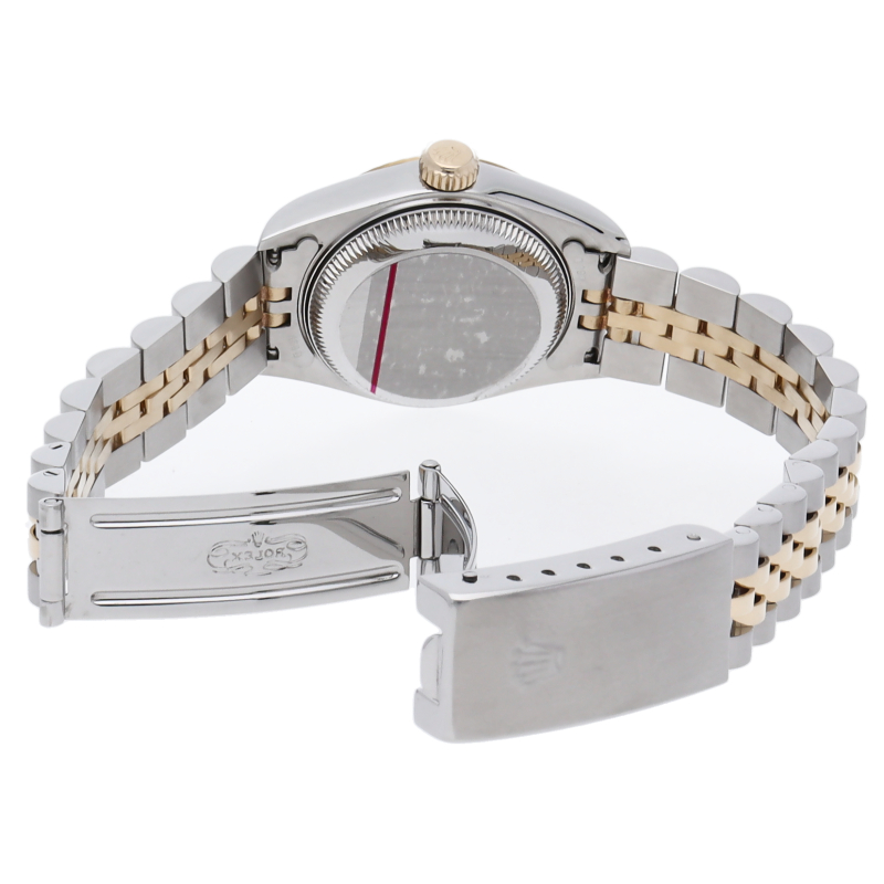 ロレックスのドレスウォッチで幅広い年齢層に愛されている「デイトジャスト」。イエローゴールドとステンレスのコンビ仕様に10Pダイヤが施され豪華です。
