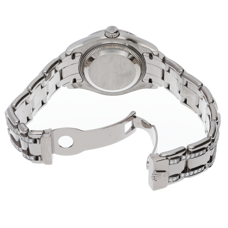 通常のデイトジャストよりも3ミリ大きい29ミリサイズのパールマスターです。柔らかな丸みを帯びたブレスレットにコンシールドタイプのクラスプがより上品なデザインとなっています。