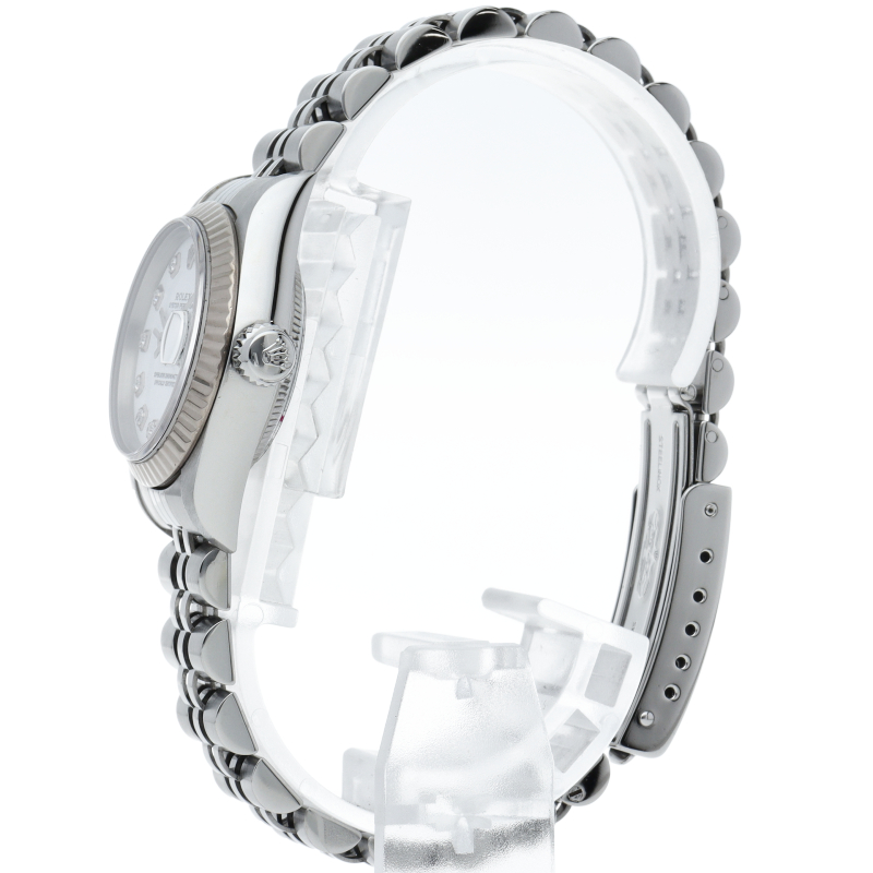 ロレックスのドレスウォッチで幅広い年齢層に愛されているデイトジャスト。ホワイトゴールドとステンレスのコンビ仕様に10Pダイヤが施され豪華です。