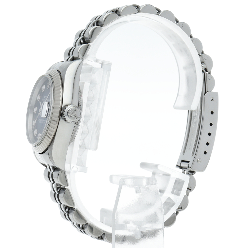 ロレックスのドレスウォッチで幅広い年齢層に愛されているデイトジャスト。ホワイトゴールドとステンレスのコンビ仕様に10Pダイヤが施され豪華です。