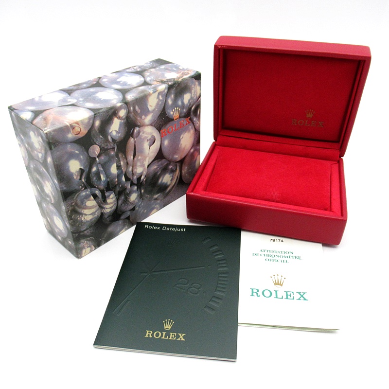 美品。ブレスレットは少々伸びが見られます。ガラスのエッジに極小のチップ欠けが見られますが、肉眼では目立ちません。新型10Pダイヤ枠。P番。