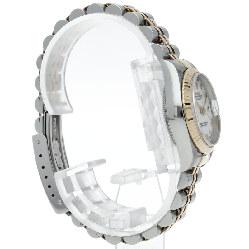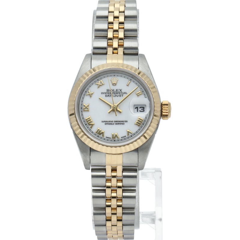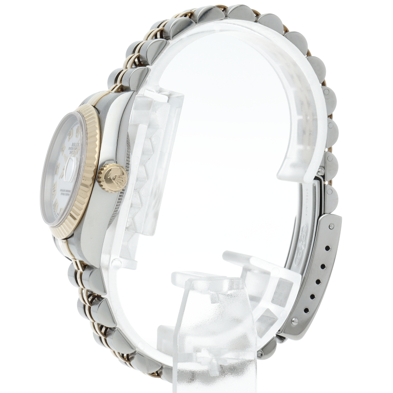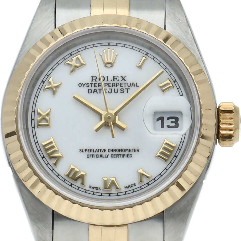 ロレックスの人気ドレスウォッチで幅広年齢層に人気のデイトジャスト。イエローゴールドとステンレスの組み合わせが上品です。人気の高いホワイトローマン文字盤です。