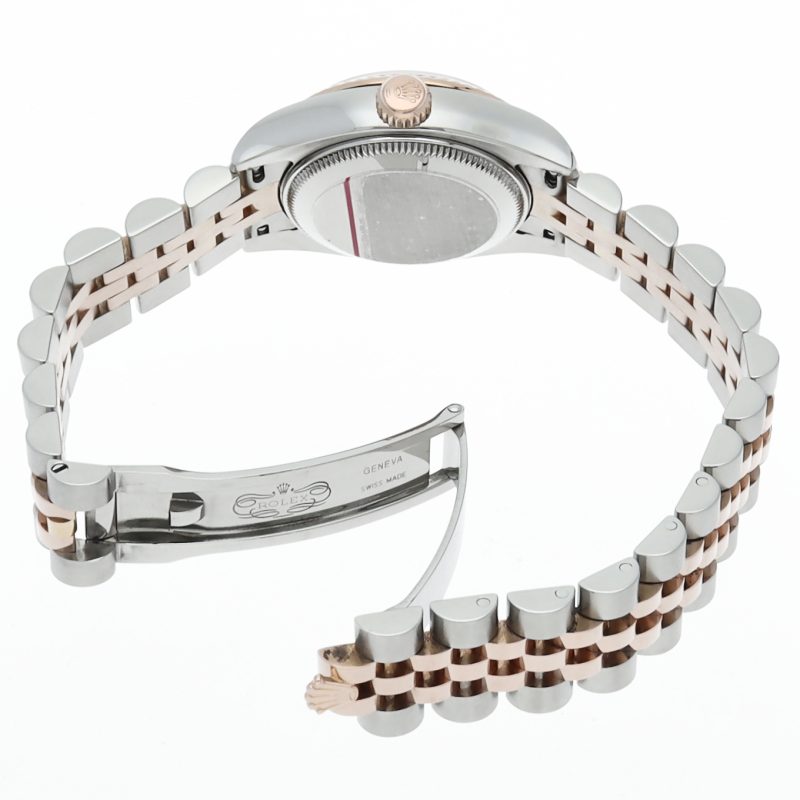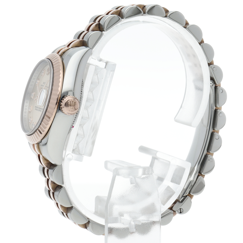 ロレックスを代表するドレスウォッチ。6時位置にはダイヤがあしらわれ、ピンクゴールドとの組み合わせが可愛らしくも気品ある一本となっています。