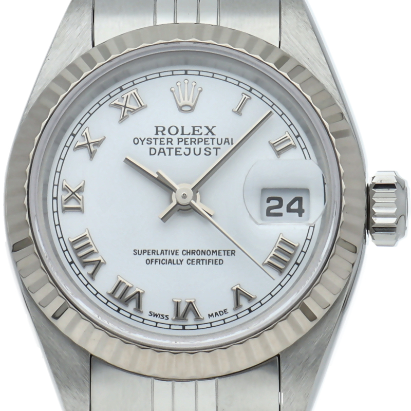 ロレックスの人気ドレスウォッチで幅広年齢層に人気のデイトジャスト。ホワイトゴールドとステンレスの組み合わせが上品です。人気のローマンインデックス。