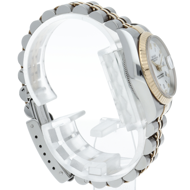 ロレックスの人気ドレスウォッチで幅広年齢層に人気のデイトジャスト。イエローゴールドとステンレスのコンビ仕様に10Pダイヤが施されてます。