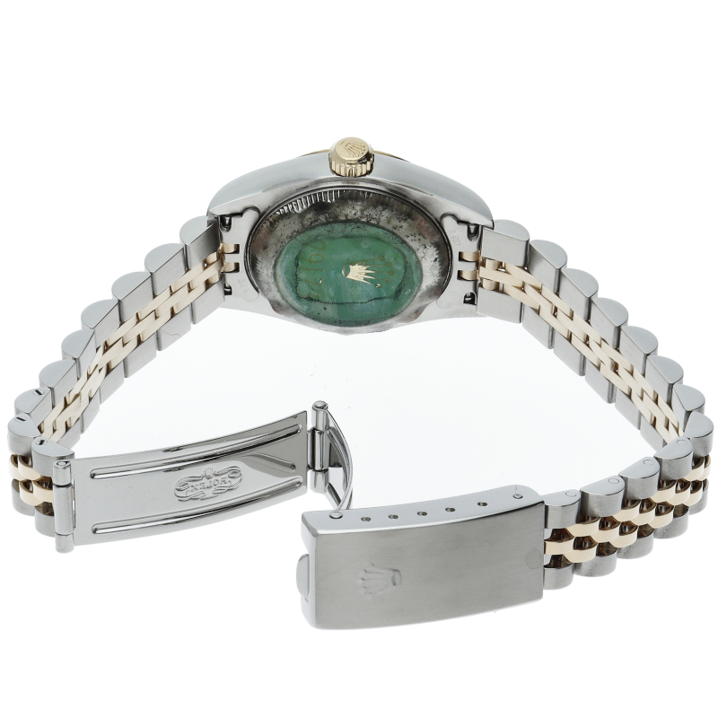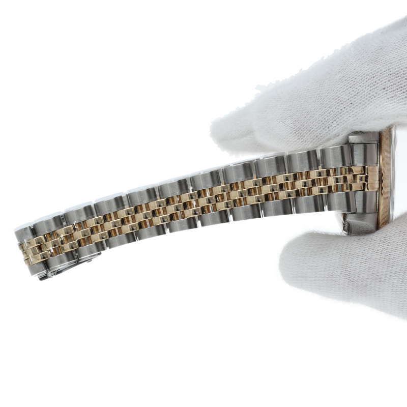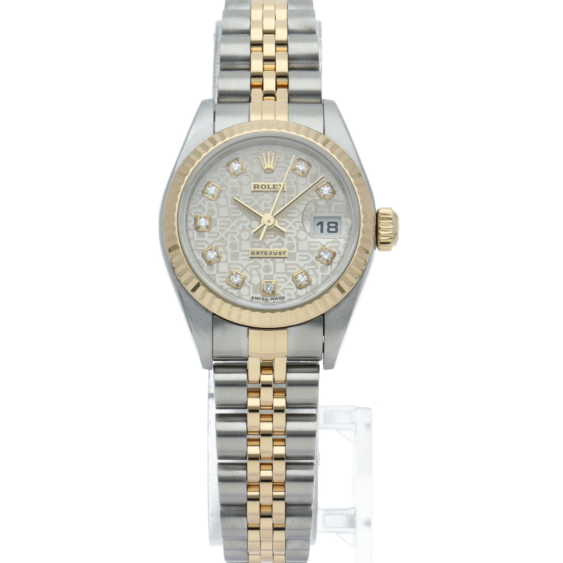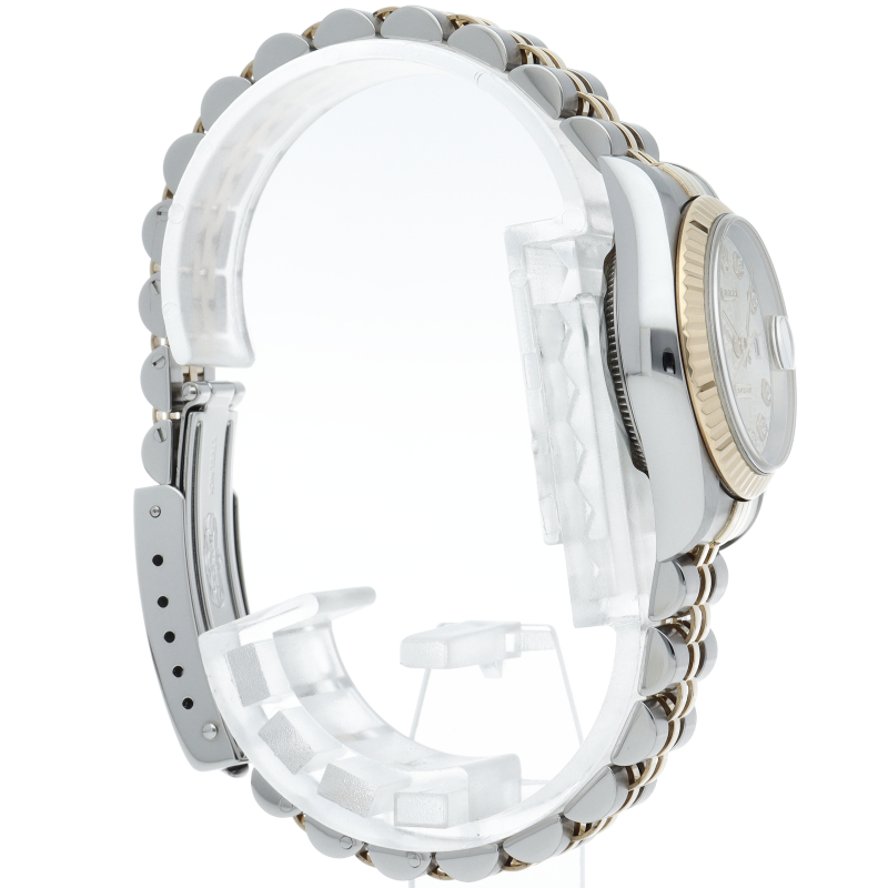 ロレックスのドレスウォッチで幅広い年齢層に愛されている「デイトジャスト」。イエローゴールドとステンレスのコンビ仕様に10Pダイヤが施され豪華です。