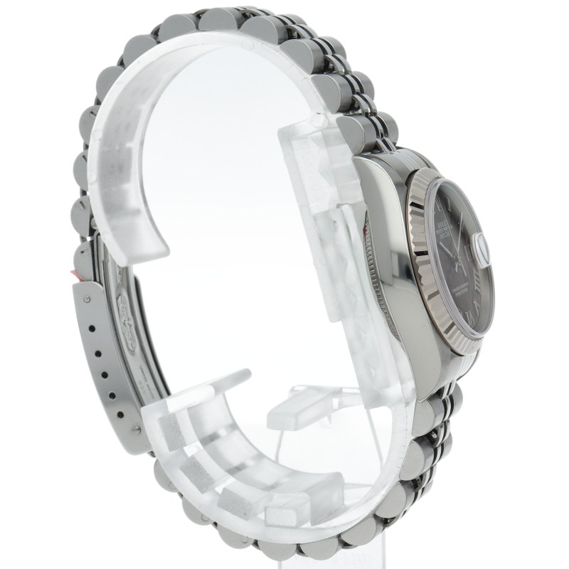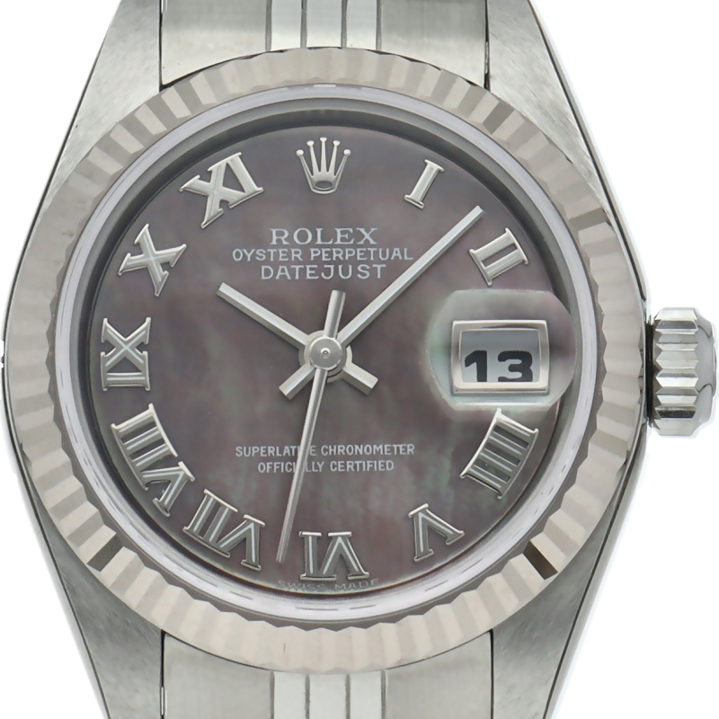 ロレックスのドレスウォッチで幅広い年齢層に愛されているデイトジャスト。ホワイトゴールドとステンレスのコンビ仕様にブラックシェルの文字盤が映えて豪華です。