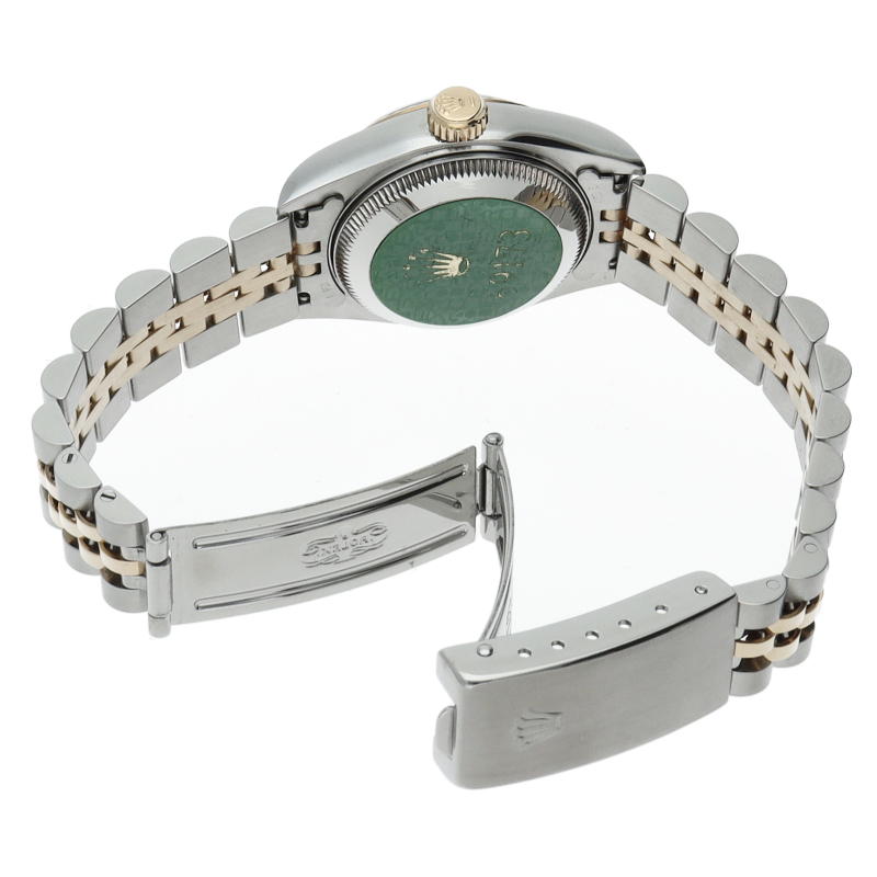 ロレックスの人気ドレスウォッチで幅広年齢層に人気のデイトジャスト。イエローゴールドとステンレスのコンビ仕様に10Pダイヤが施されてます。