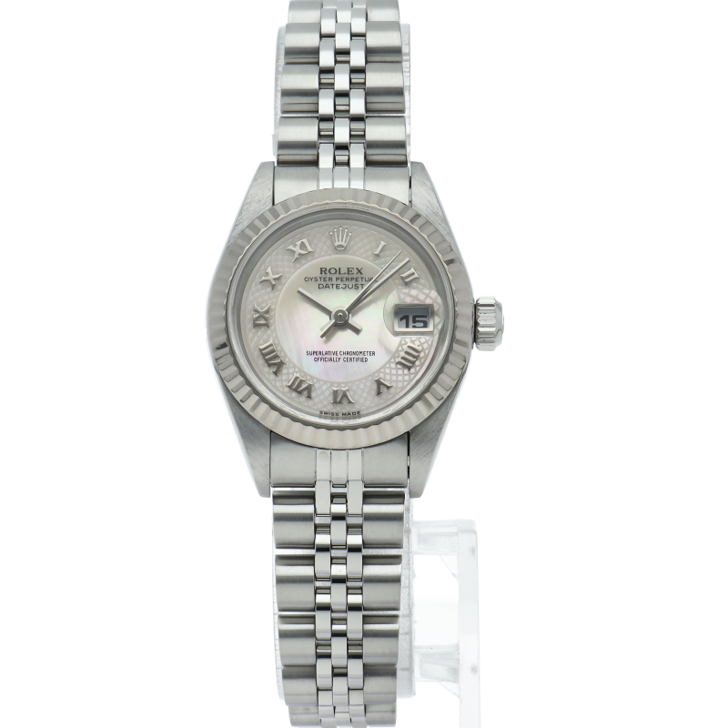 男女問わず永遠のステータスシンボルとも言えるロレックスの“デイトジャスト”。様々なバリエーションがありますが、こちらは ピンクシェル文字盤にデコレーション(格子模様)を施した希少性の高いモデルです。ゴールドの光沢にも負けないピンクシェルの柔らかな光沢感が魅力です。