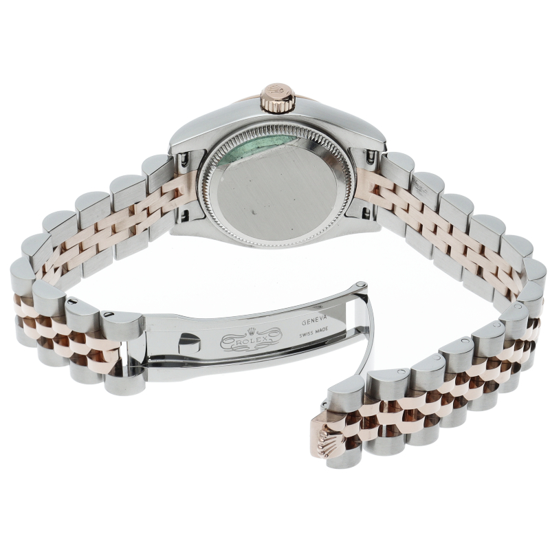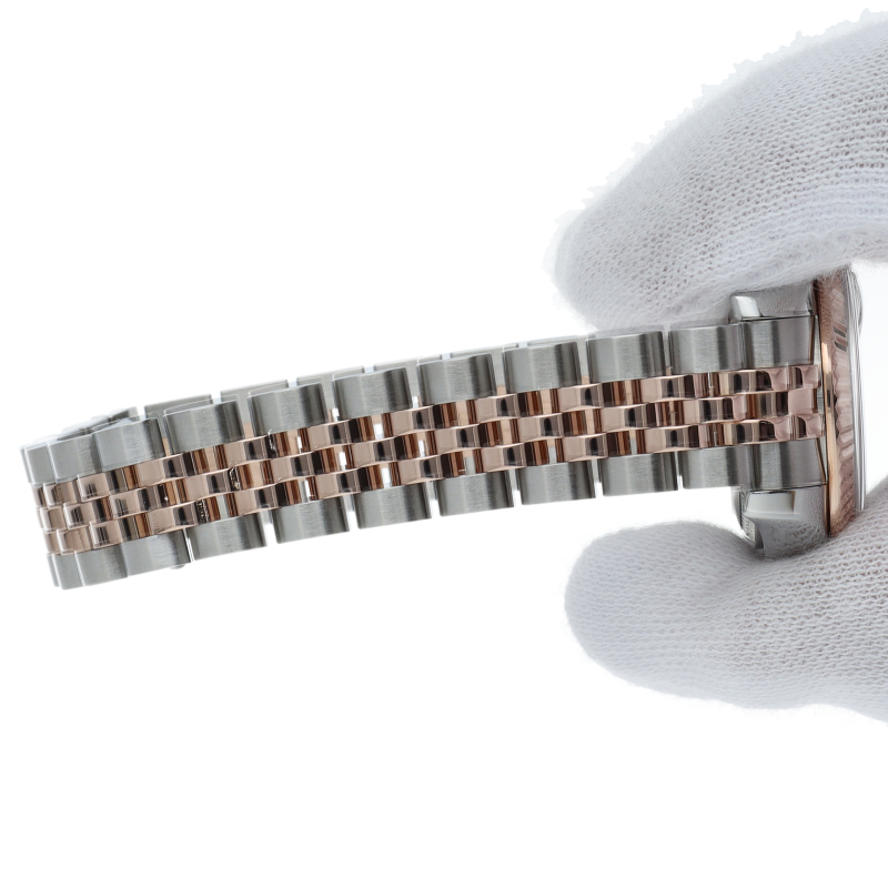 ロレックスを代表するドレスウォッチ。6時位置にはダイヤがあしらわれ、ピンクゴールドとの組み合わせが可愛らしくも気品ある一本となっています。