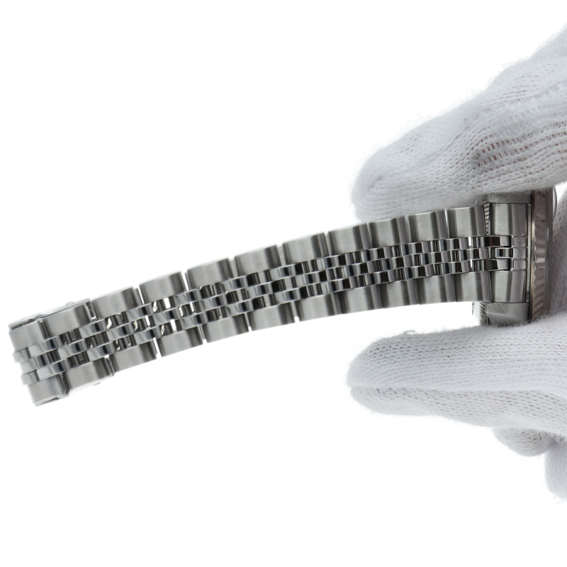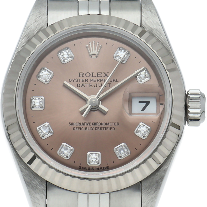 ロレックスのドレスウォッチで幅広い年齢層に愛されているデイトジャスト。ホワイトゴールドとステンレスのコンビ仕様に10Pダイヤが施され豪華です。