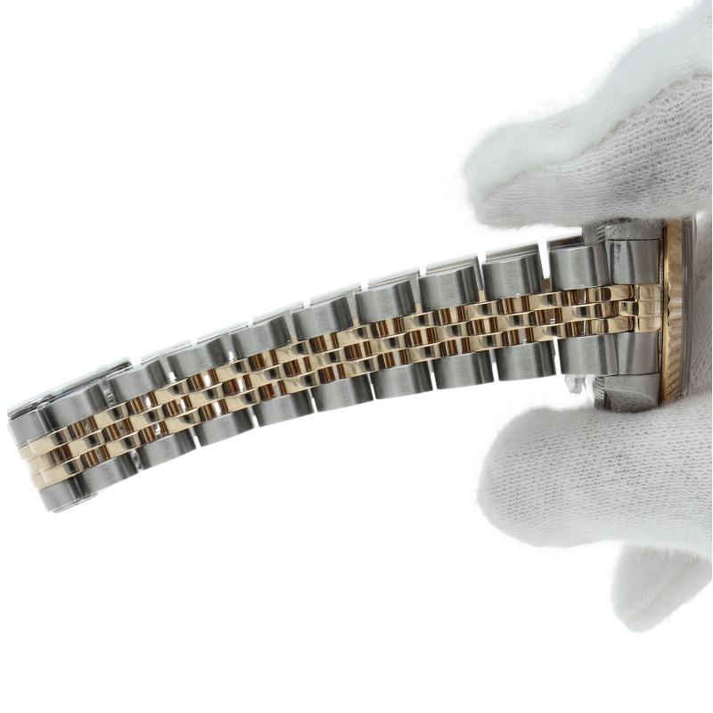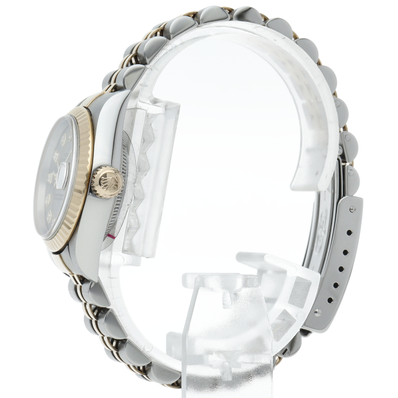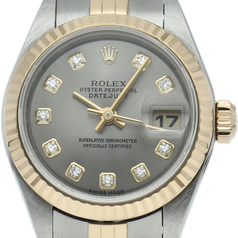 ロレックスのドレスウォッチで幅広い年齢層に愛されている「デイトジャスト」。イエローゴールドとステンレスのコンビ仕様に10Pダイヤが施され豪華です。