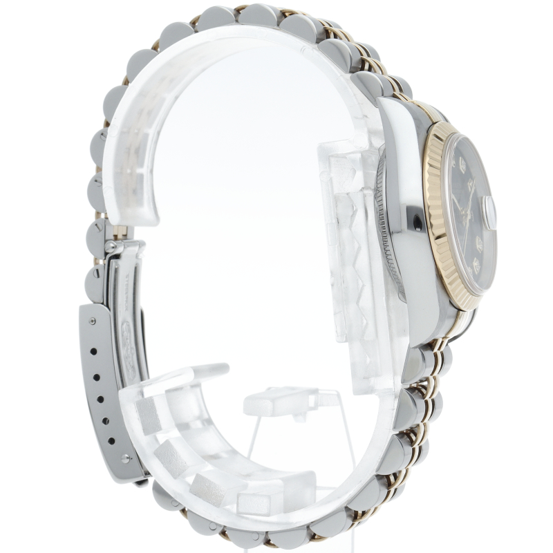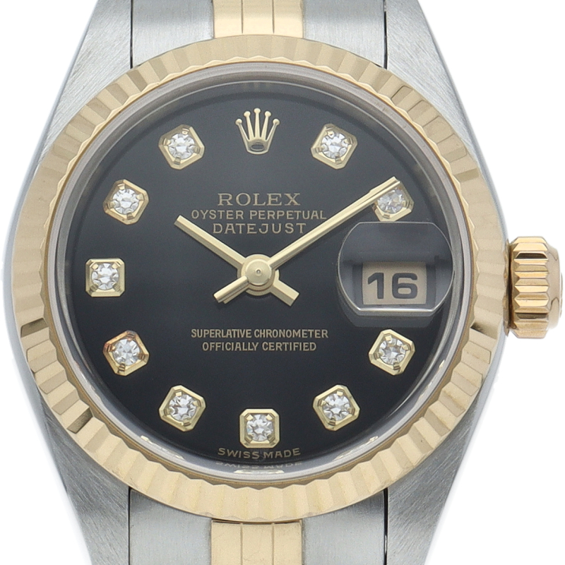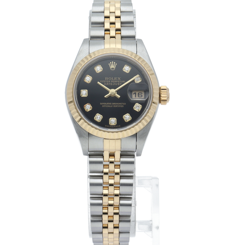 ロレックスのドレスウォッチで幅広い年齢層に愛されている「デイトジャスト」。イエローゴールドとステンレスのコンビ仕様に10Pダイヤが施され豪華です。