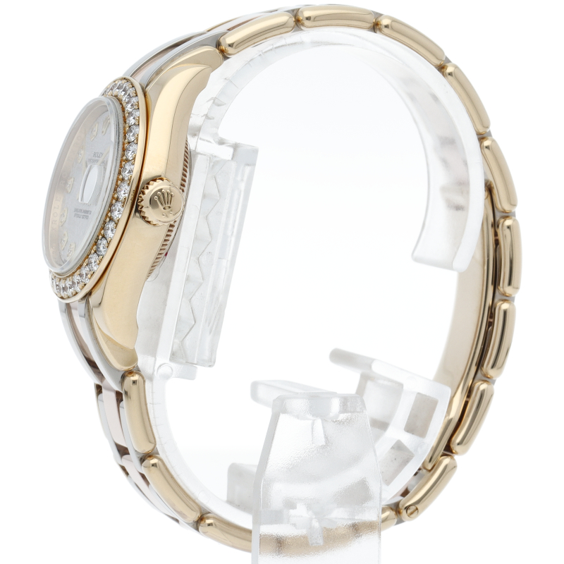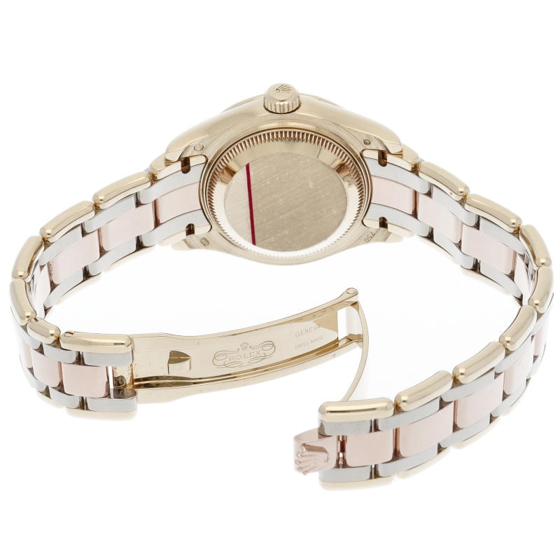 通常のデイトジャストよりも3ミリ大きい29ミリサイズのパールマスターです。柔らかな丸みを帯びたブレスレットにコンシールドタイプのクラスプがより上品なデザインとなっています。
