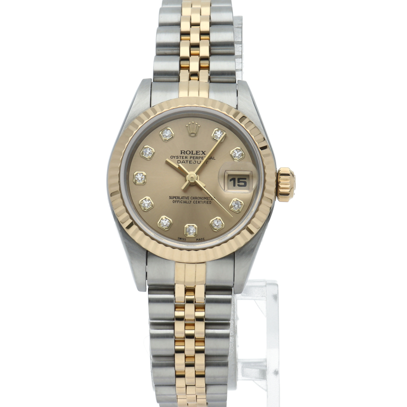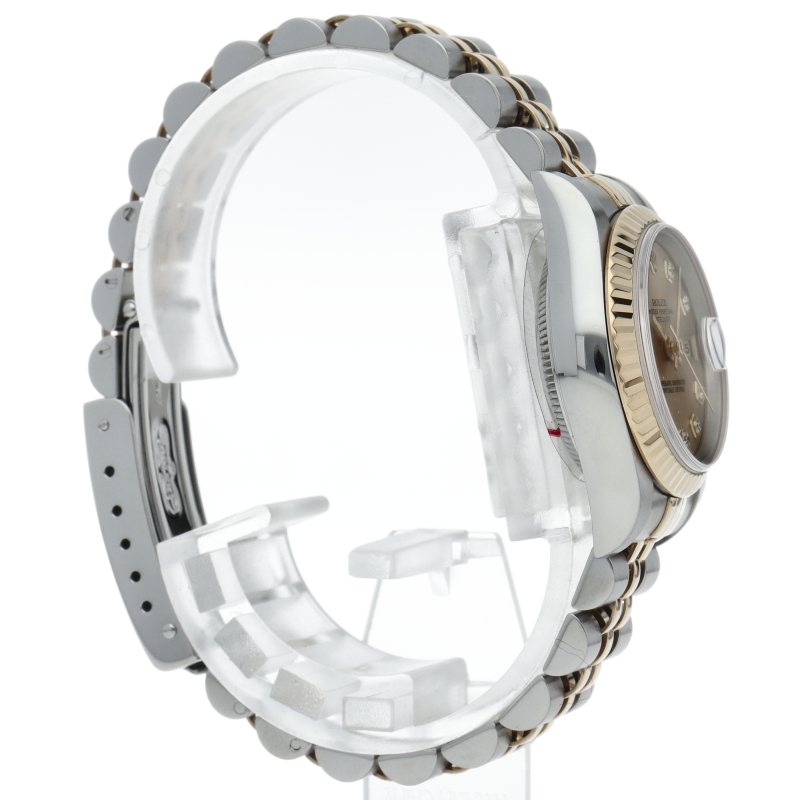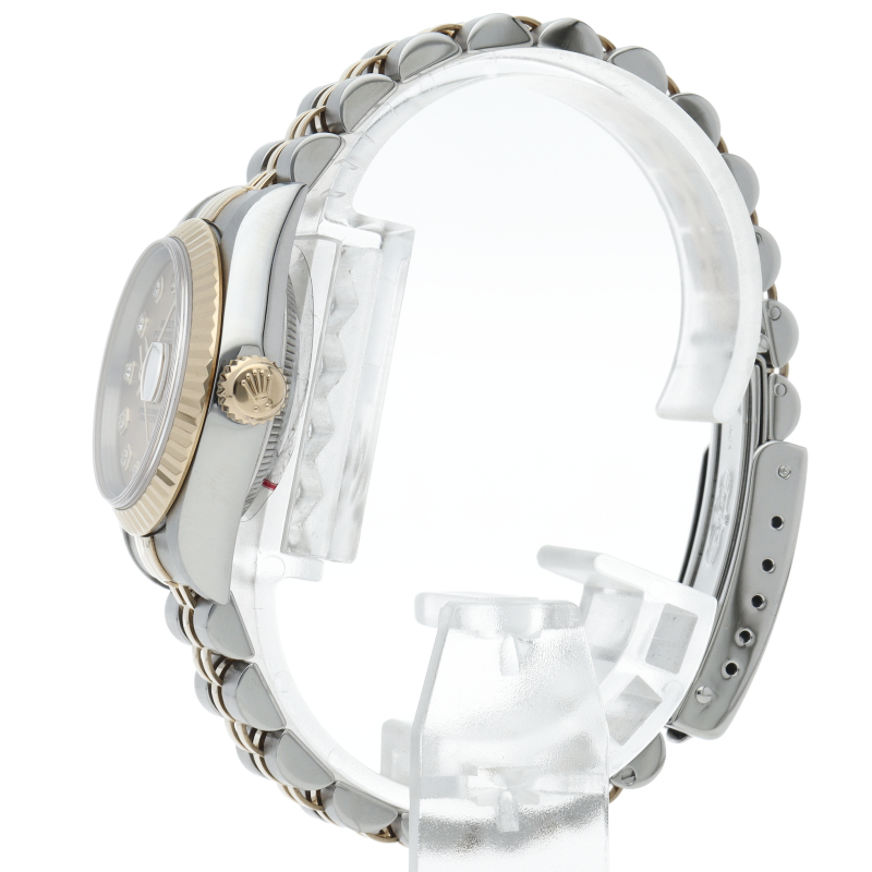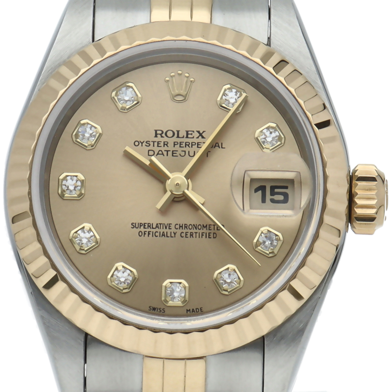ロレックスの人気ドレスウォッチで幅広年齢層に人気のデイトジャスト。イエローゴールドとステンレスのコンビ仕様に10Pダイヤが施されてます。
