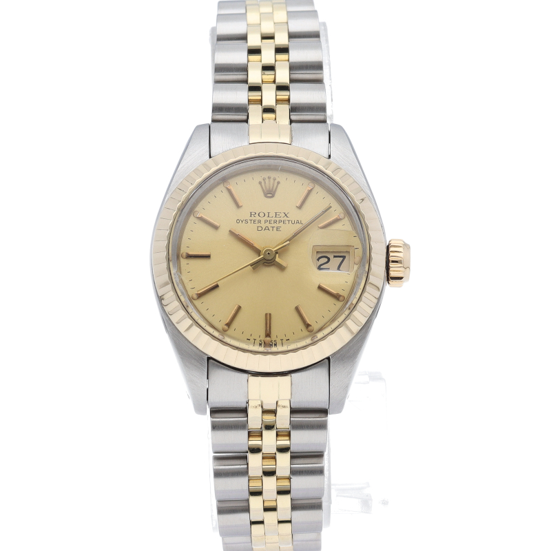 ロレックスのスタンダードモデルとして人気の高いオイスターパーペチュアルデイトのヴィンテージモデルです。小ぶりの26mmケースにジュビリーブレスレットが組み合わされ、可愛らしい印象を持たせてくれています。夜光にはトリチウムが使用されています。