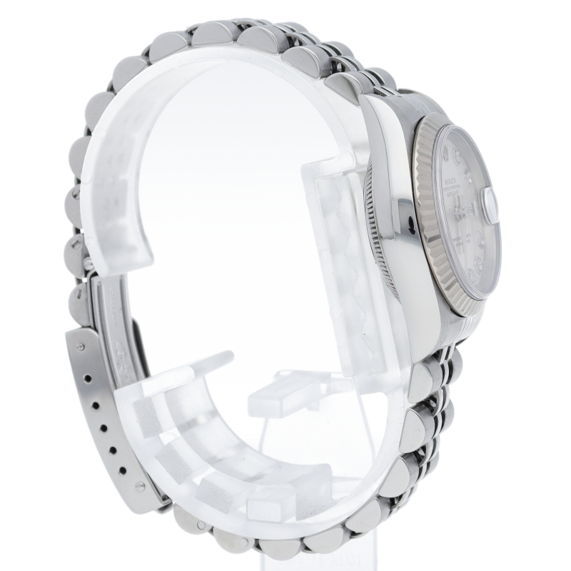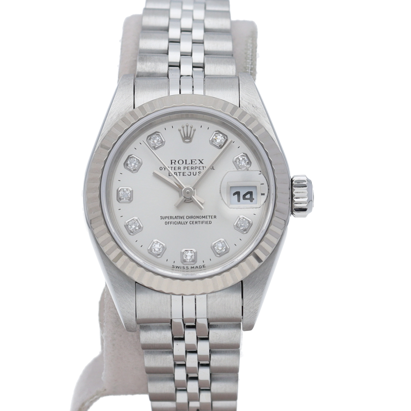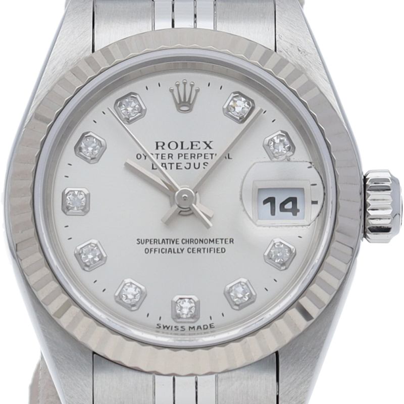 ロレックスのドレスウォッチで幅広い年齢層に愛されているデイトジャスト。ホワイトゴールドとステンレスのコンビ仕様に10Pダイヤが施され豪華な一本に仕上がっています。