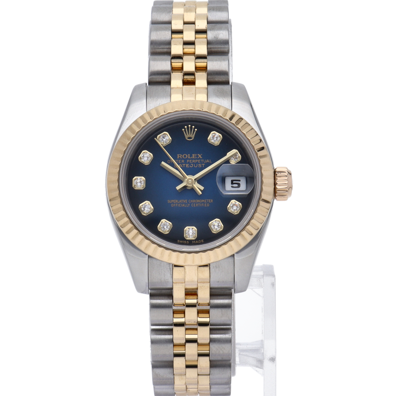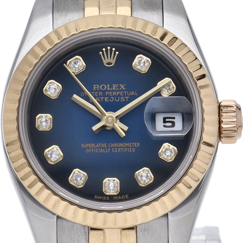 デイトジャスト 26 レディース時計 10Pダイヤ ブルーグラデーション