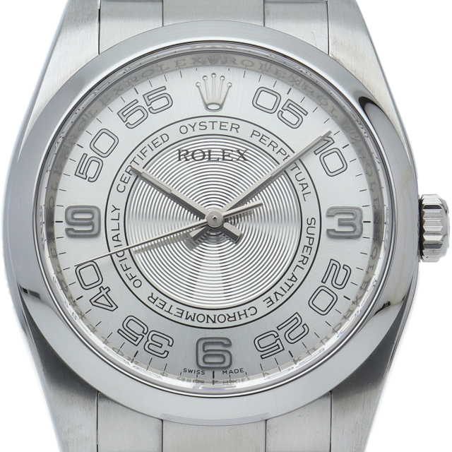 ロレックスの中でもシンプルな3針で時計本来の機能を追求した「オイスターパーペチュアル」。洗練されたデザインはスタイルを選ばず使用できます。文字盤はコンセントリック文字盤です。