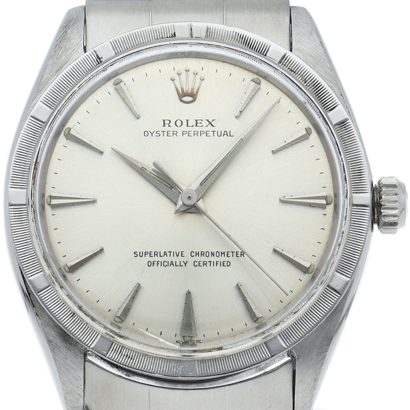 ロレックスの中でもシンプルな3針で時計本来の機能を追求した「オイスターパーペチュアル」。ロレックスならではのアンティーク感が特徴的なプラ風防です。変わったモデルをお探しの方にはピッタリの一本です。