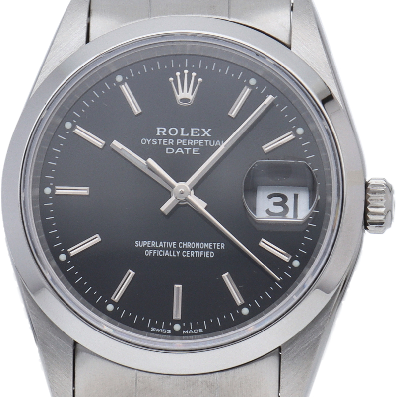 ロレックスのデイリーウォッチとして人気の「オイスター・デイト」。デイト表示機能付でビジネスからカジュアルまでスタイルを選ばないデザインが魅力です。