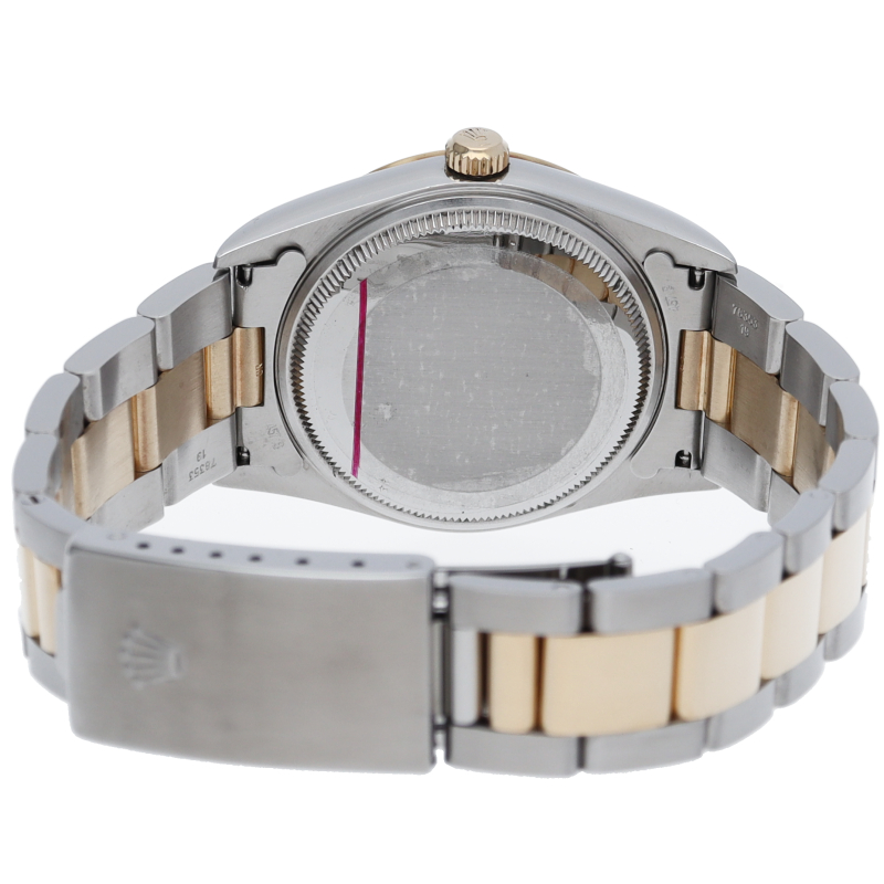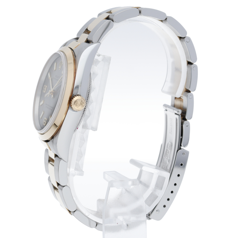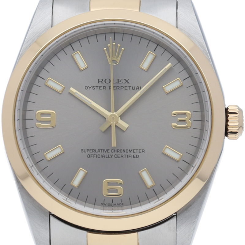 ロレックスのデイリーウォッチとして人気の「オイスターパーペチュアル」。こちらはイエローゴールドとのコンビ仕様で高級感も兼ね備えた1本。