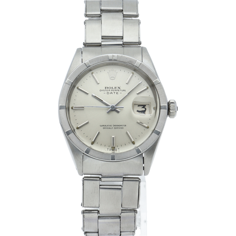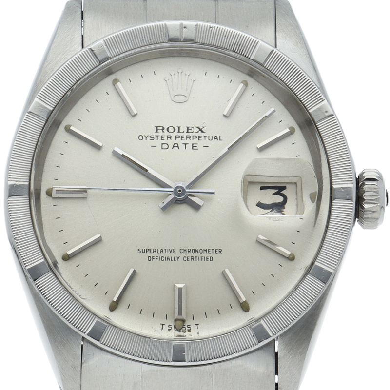 オイスターパーペチュアル デイトのアンティーク商品で1501です。少し小振りのケースサイズですが、エンジンターンドベゼルにより、存在感を演出しています。