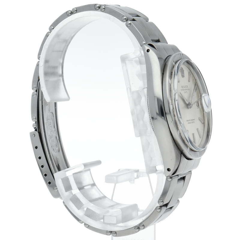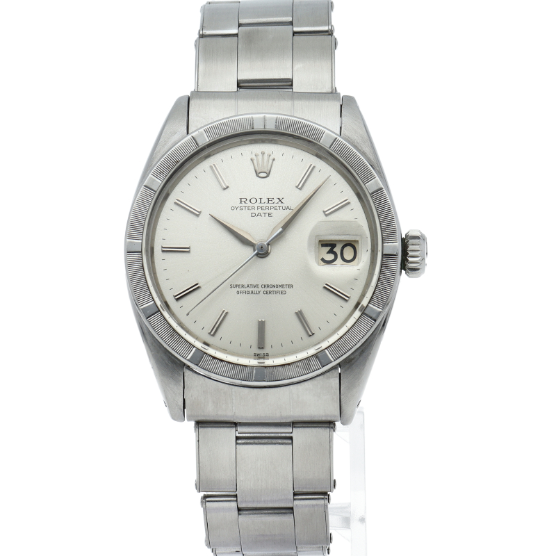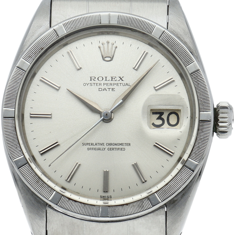 オイスターパーペチュアル デイトのアンティーク商品で1501です。少し小振りのケースサイズですが、エンジンターンドベゼルにより、存在感を演出しています。