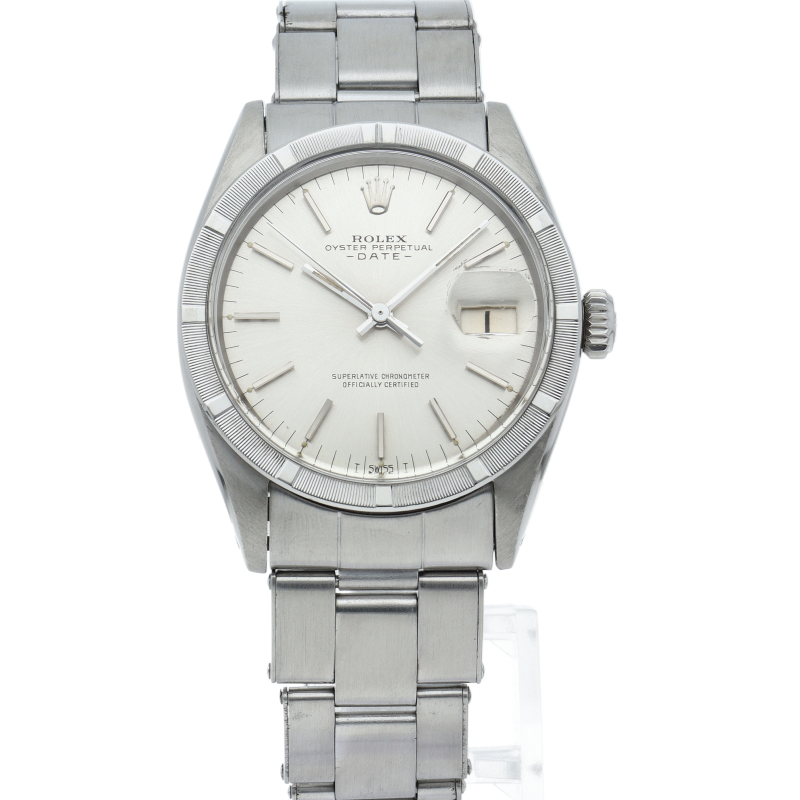 オイスターパーペチュアル デイトのアンティーク商品で1501です。少し小振りのケースサイズですが、エンジンターンドベゼルにより、存在感を演出しています。