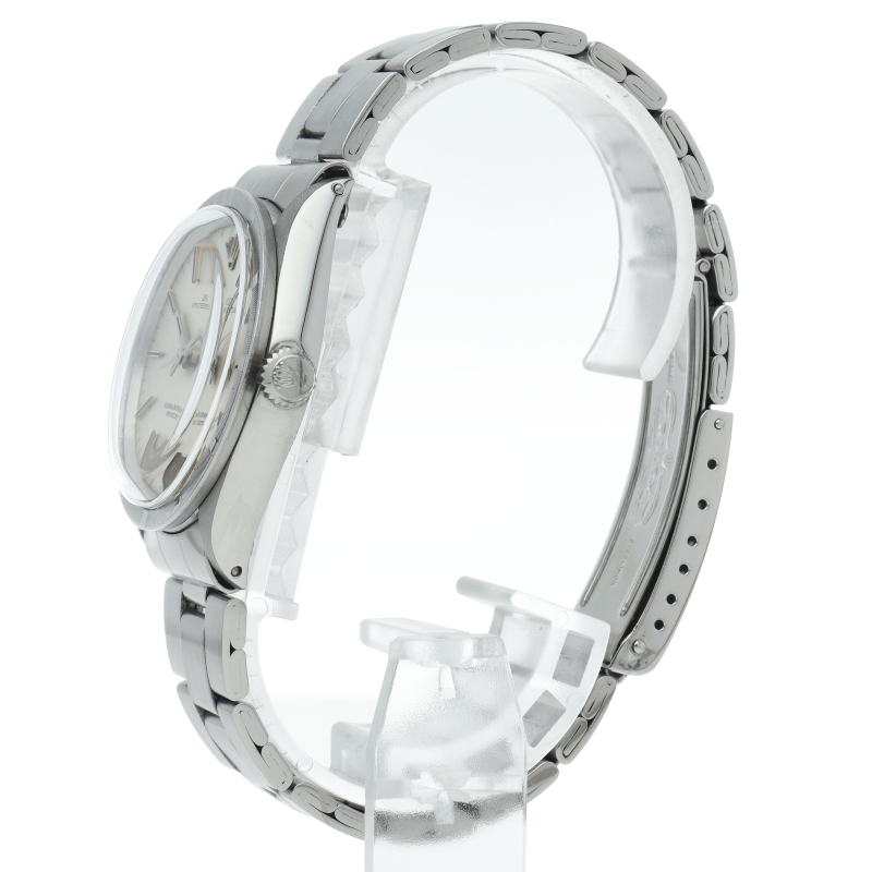 ロレックスの中でもシンプルな3針で時計本来の機能を追求した「オイスターパーペチュアル」。ロレックスならではのアンティーク感が特徴的なプラ風防です。変わったモデルをお探しの方にはピッタリの一本です。