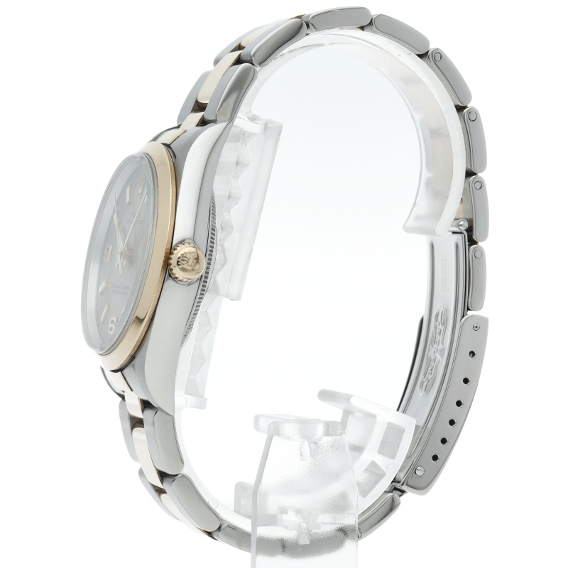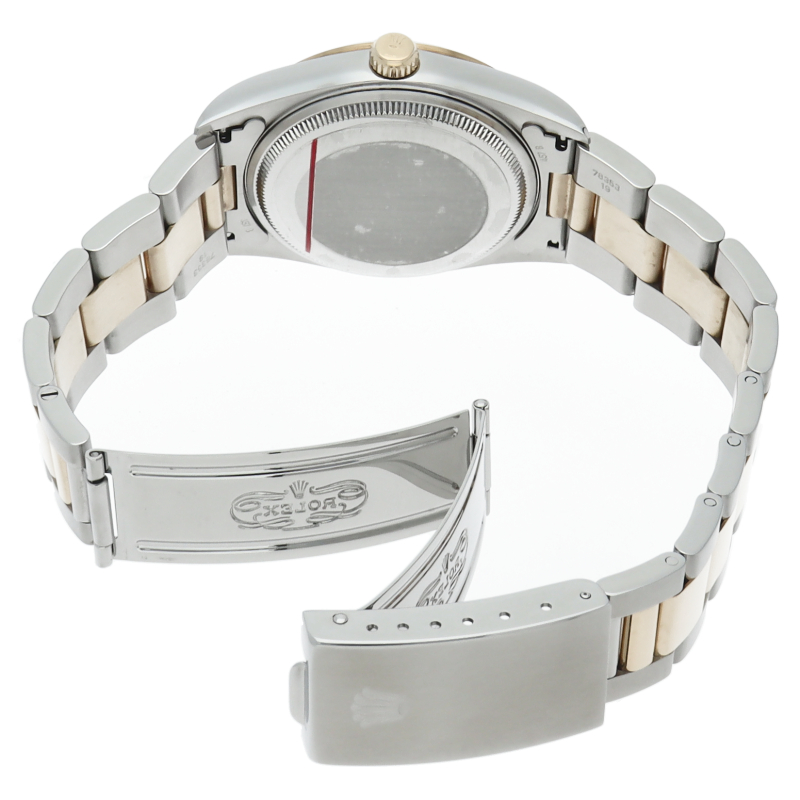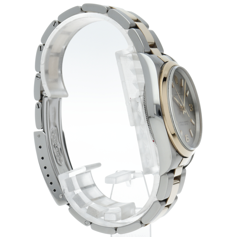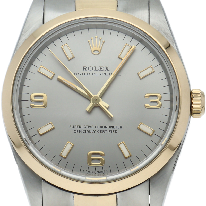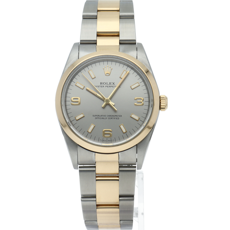 ロレックスのデイリーウォッチとして人気の「オイスターパーペチュアル」。こちらはイエローゴールドとのコンビ仕様で高級感も兼ね備えた1本。