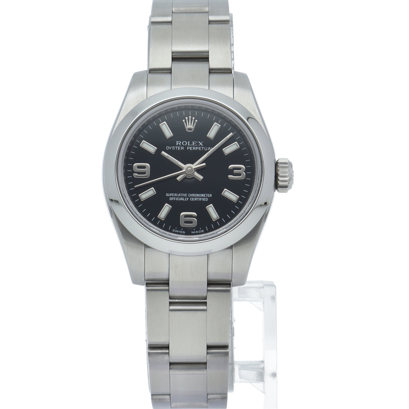 ロレックスの中でもシンプルな3針で時計本来の機能を追求した「オイスターパーペチュアル」。洗練されたデザインはスタイルを選ばず使用できます。