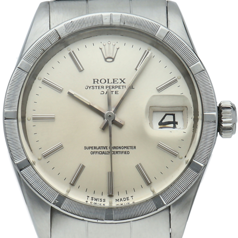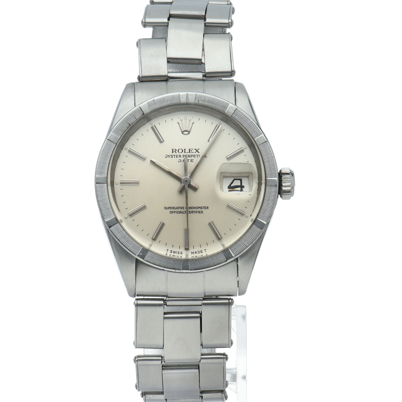 オイスターパーペチュアル デイトのアンティーク商品で1501です。少し小振りのケースサイズですが、エンジンターンドベゼルにより、存在感を演出しています。