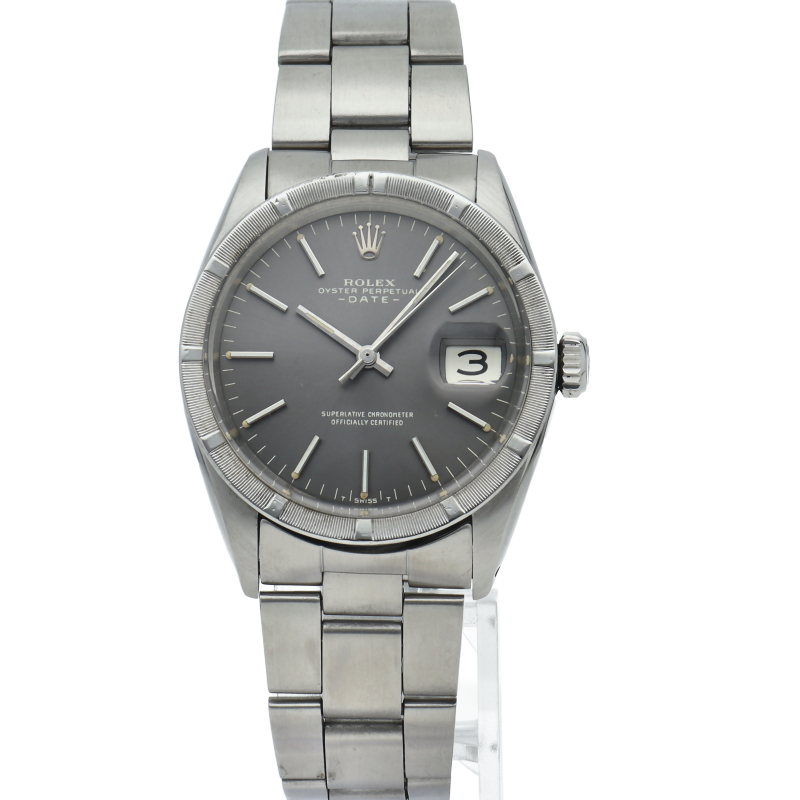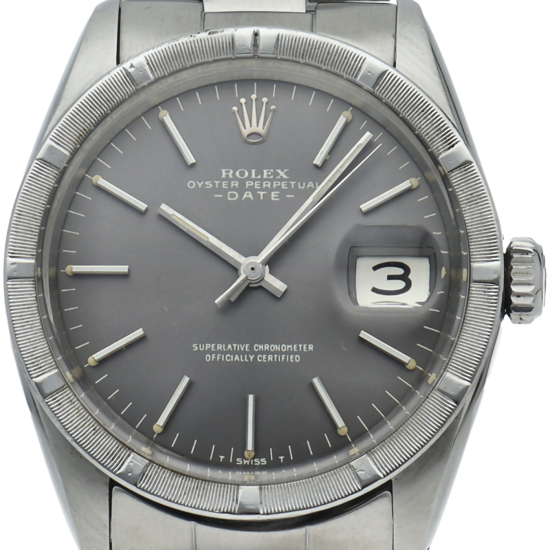 オイスターパーペチュアル デイトのアンティーク商品で1501です。少し小振りのケースサイズですが、エンジンターンドベゼルにより、存在感を演出しています。