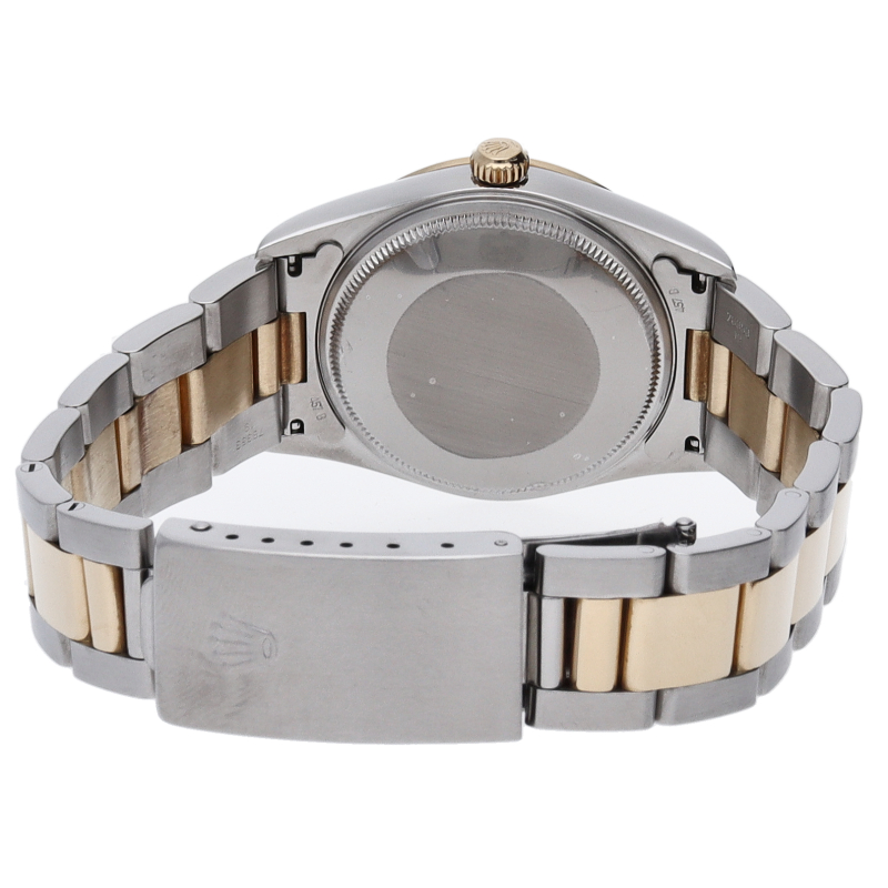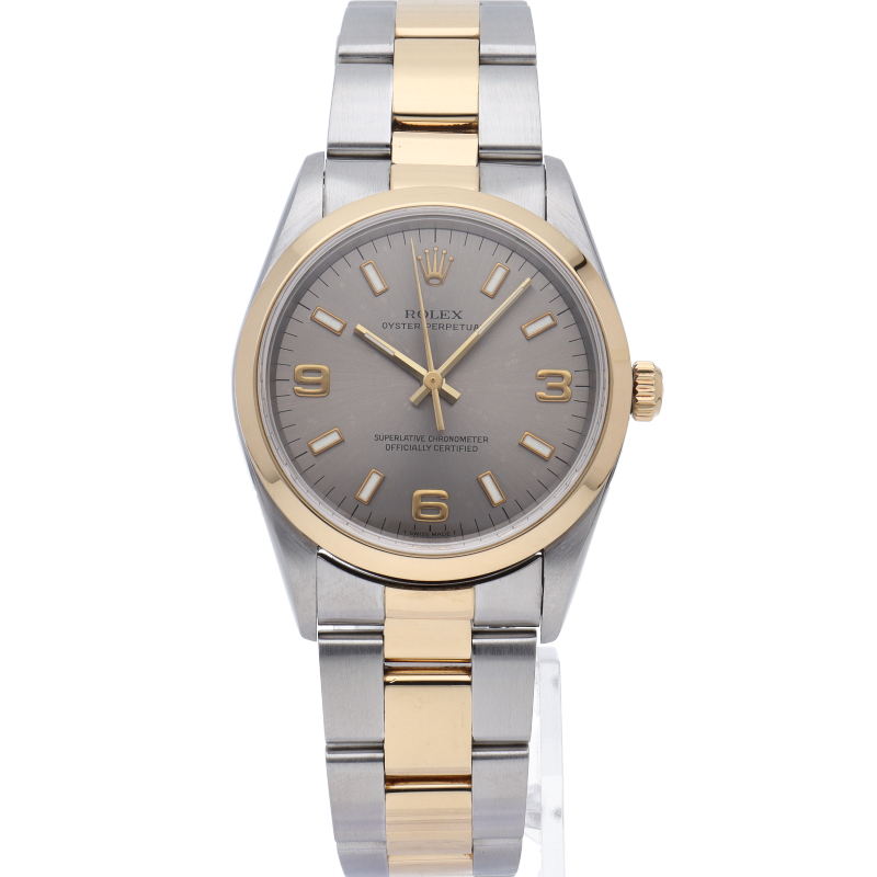 ロレックスのデイリーウォッチとして人気の「オイスターパーペチュアル」。こちらはイエローゴールドとのコンビ仕様で高級感も兼ね備えた1本。