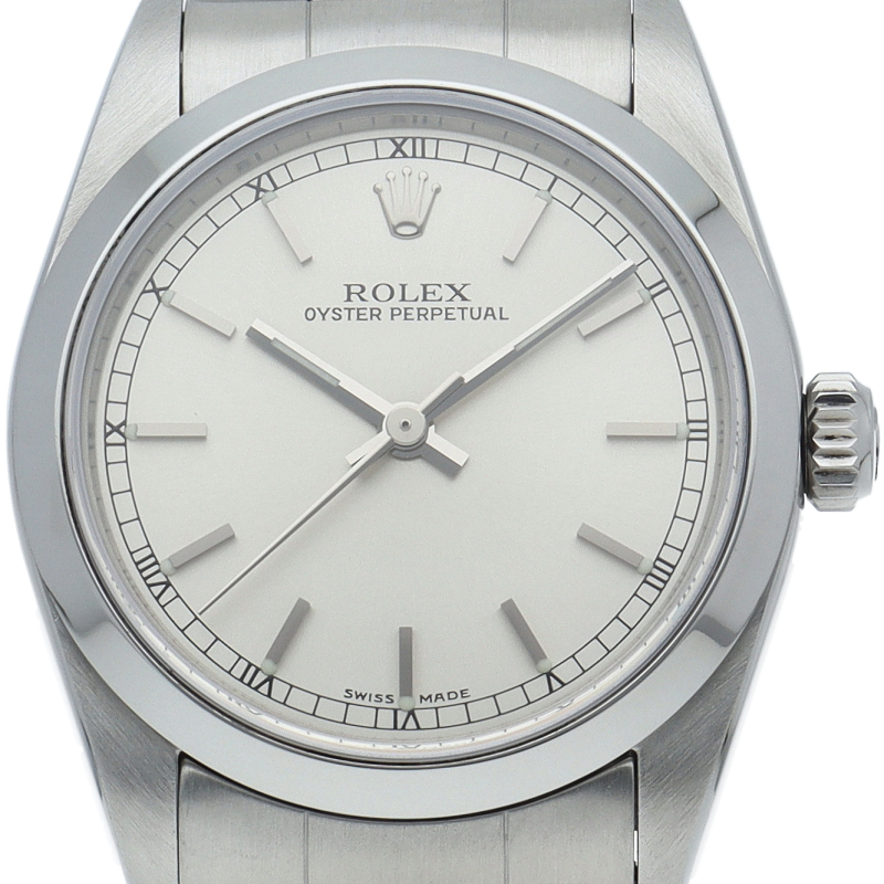 ロレックスの中でもシンプルな3針で時計本来の機能を追求した「オイスターパーペチュアル」。洗練されたデザインはスタイルを選ばず使用できます。
