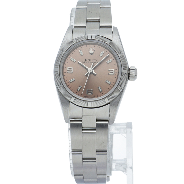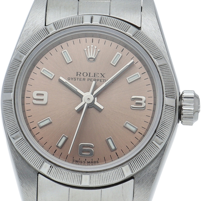 ロレックスの中でもシンプルな3針で時計本来の機能を追求した「オイスターパーペチュアル」。洗練されたデザインはスタイルを選ばず使用できます。ファインリーエンジンターンドベゼル仕様。