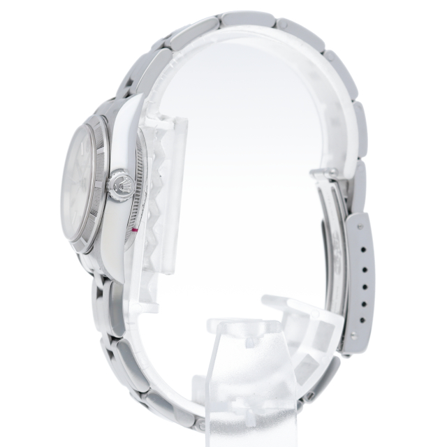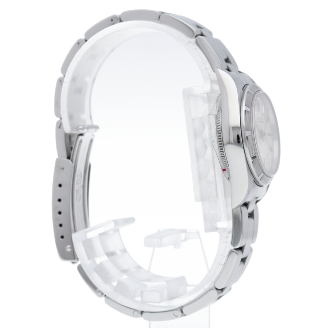 ロレックスの中でもシンプルな3針で時計本来の機能を追求した「オイスターパーペチュアル」。洗練されたデザインはスタイルを選ばず使用できます。ファインリーエンジンターンドベゼル仕様。