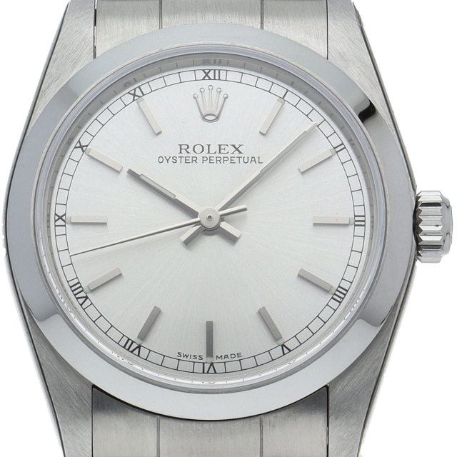 ロレックスの中でもシンプルな3針で時計本来の機能を追求した「オイスターパーペチュアル」。洗練されたデザインはスタイルを選ばず使用できます。