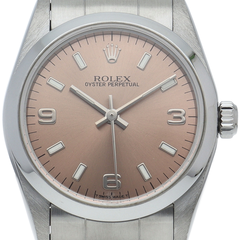 ロレックスの中でもシンプルな3針で時計本来の機能を追求した「オイスターパーペチュアル」。洗練されたデザインはスタイルを選ばず使用できます。