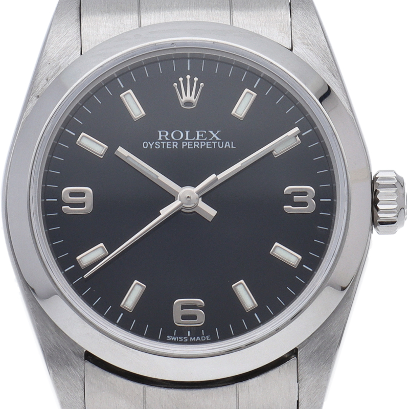 ロレックスの中でもシンプルな3針で時計本来の機能を追求した「オイスターパーペチュアル」。洗練されたデザインはスタイルを選ばず使用できます。