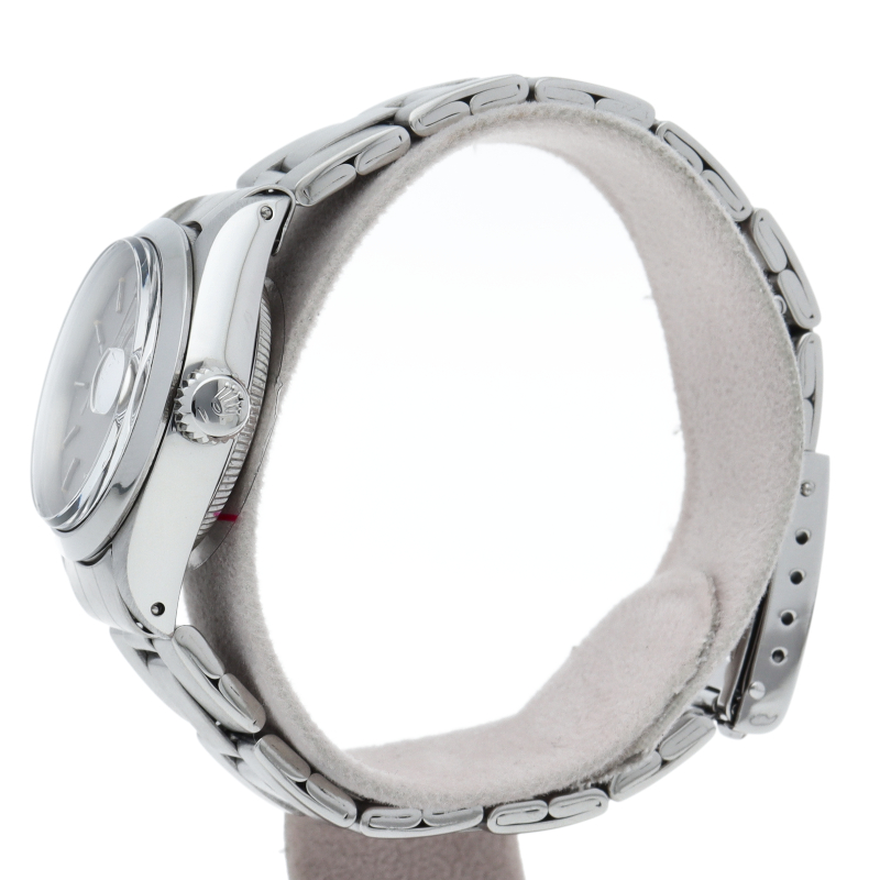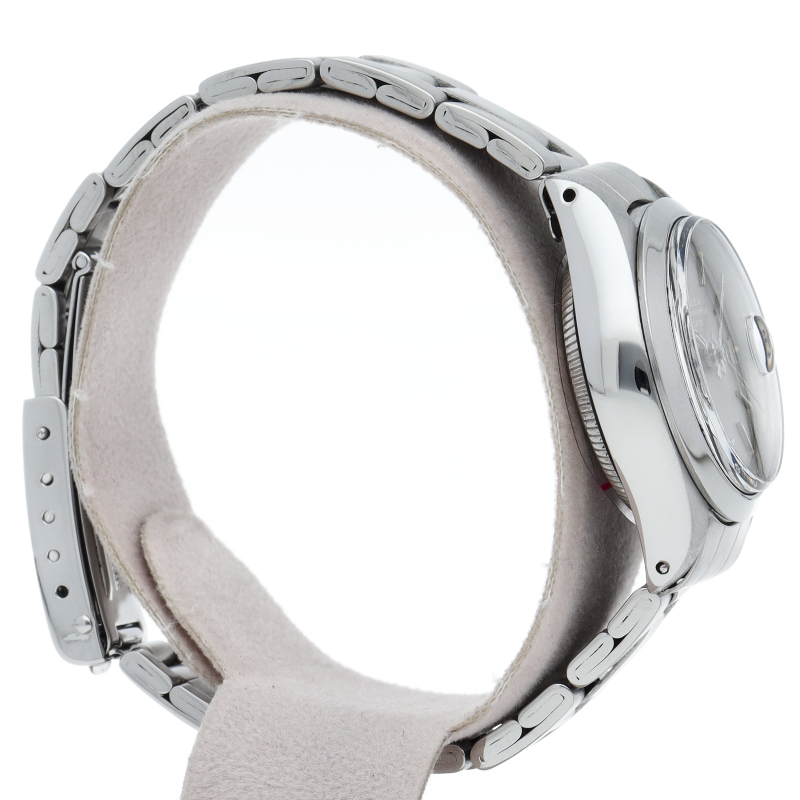 ロレックスの中でもシンプルな3針で時計本来の機能を追求した「オイスターパーペチュアルデイト」。洗練されたデザインはスタイルを選ばず使用できます。Cal.1161。