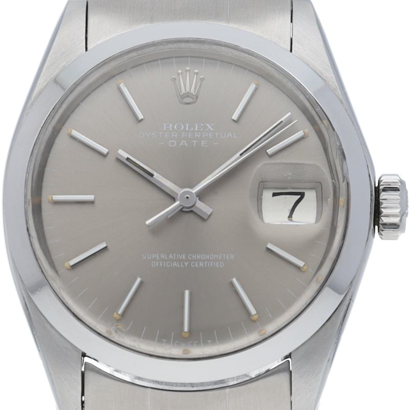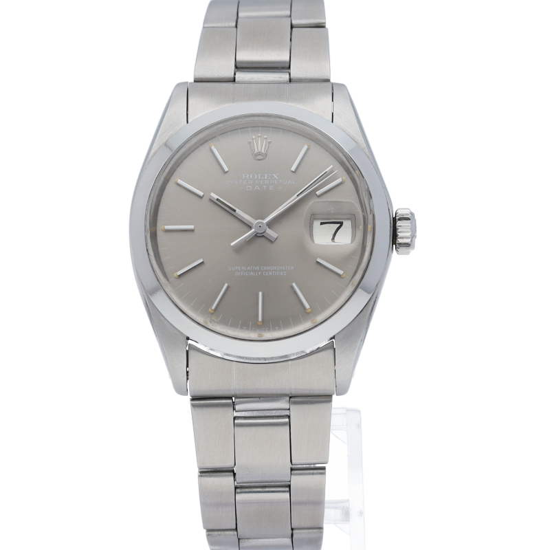 ロレックスの中でもシンプルな3針で時計本来の機能を追求した「オイスターパーペチュアルデイト」。洗練されたデザインはスタイルを選ばず使用できます。1970年代のアンティーク品です。