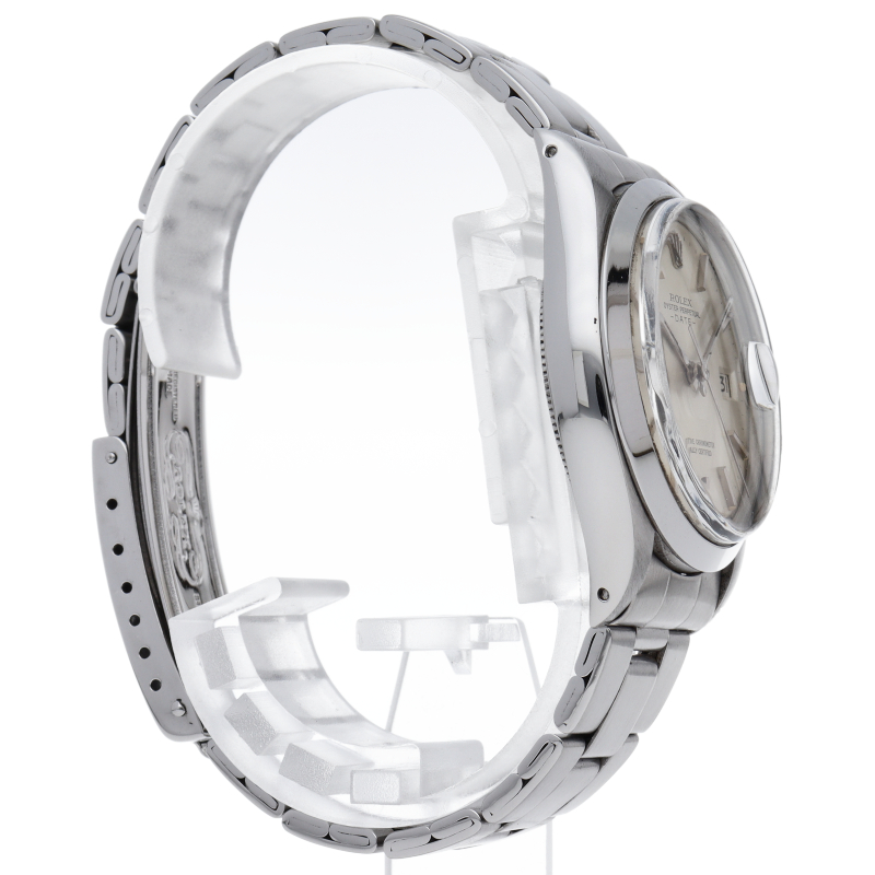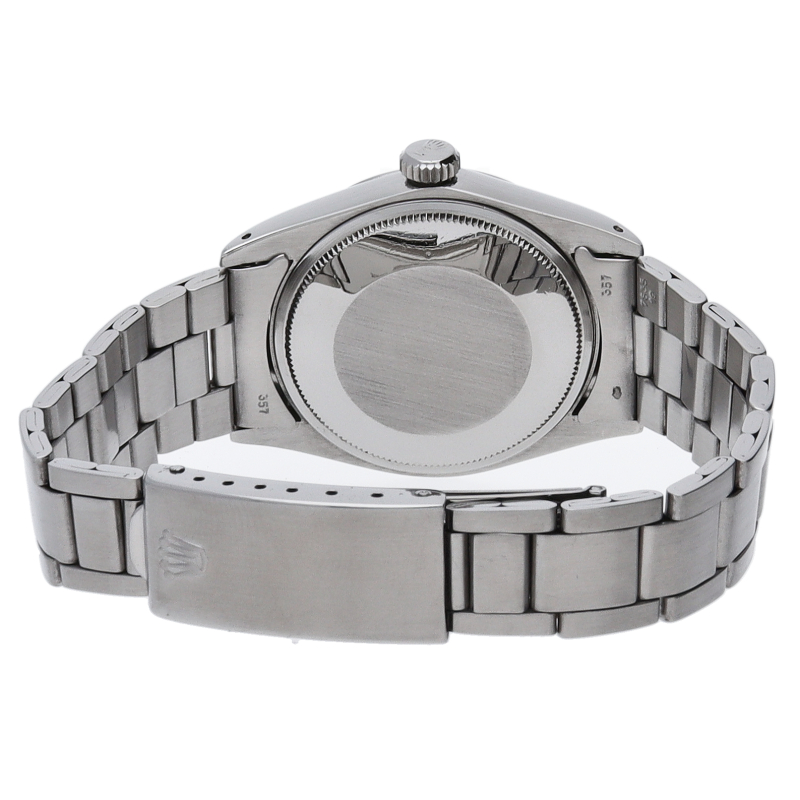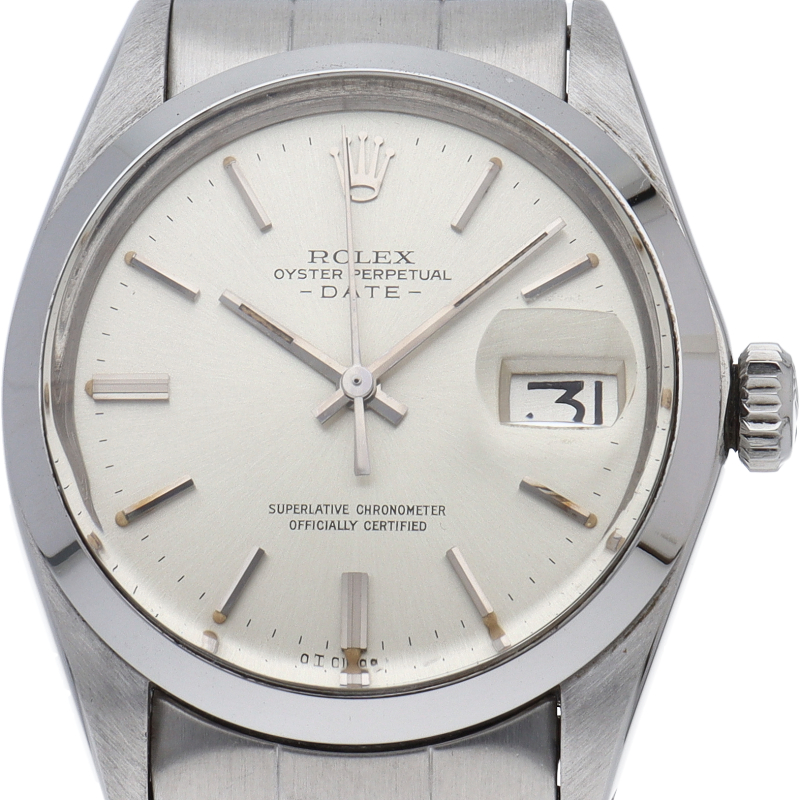 ロレックスの中でもシンプルな3針で時計本来の機能を追求した「オイスターパーペチュアルデイト」。洗練されたデザインはスタイルを選ばず使用できます。1960年代のアンティーク品です。6時位置にインデックス等に貴金属が使用されている事を表すシグママークが入った、希少性・高級感の非常に高い1本です。