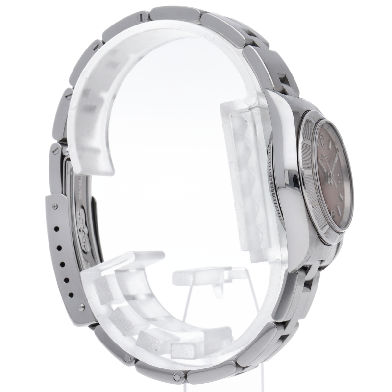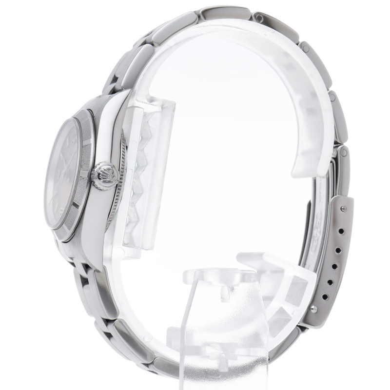 ロレックスの中でもシンプルな3針で時計本来の機能を追求した「オイスターパーペチュアル」。洗練されたデザインはスタイルを選ばず使用できます。ファインリーエンジンターンドベゼル仕様。