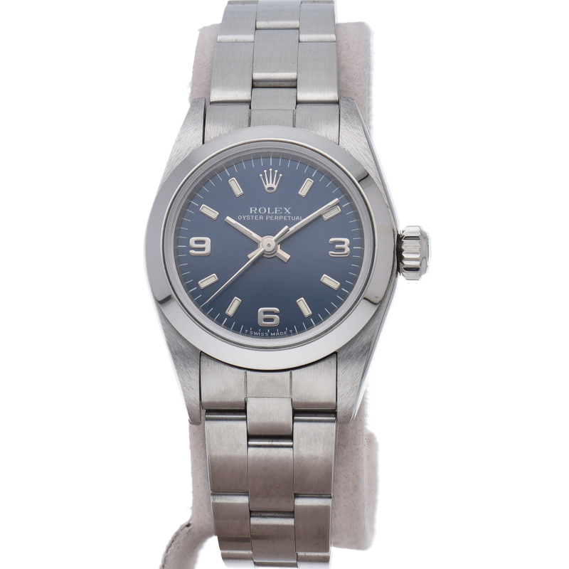 ロレックスの中でもシンプルな3針で時計本来の機能を追求した「オイスターパーペチュアル」。洗練されたデザインはスタイルを選ばず使用できます。