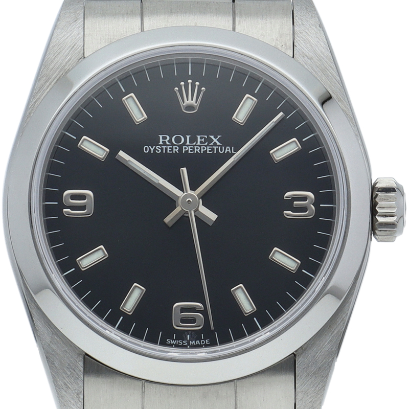 ロレックスの中でもシンプルな3針で時計本来の機能を追求した「オイスターパーペチュアル」。洗練されたデザインはスタイルを選ばず使用できます。
