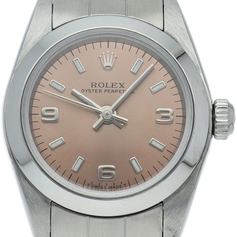 ロレックスの中でもシンプルな3針で時計本来の機能を追求した「オイスターパーペチュアル」。洗練されたデザインはスタイルを選ばず使用できます。
