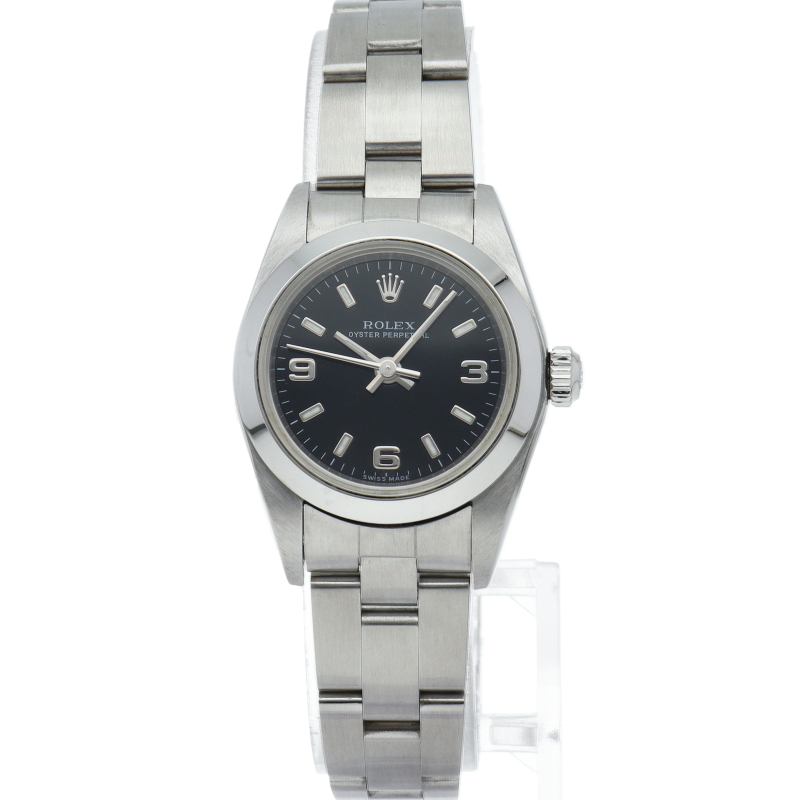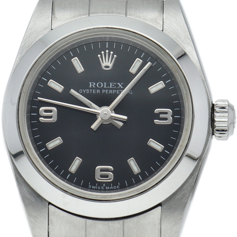 ロレックスの中でもシンプルな3針で時計本来の機能を追求した「オイスターパーペチュアル」。洗練されたデザインはスタイルを選ばず使用できます。